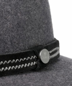 Felted 100% wool gives this traveller hat its lightweight, warming and water-repellent properties. If necessary, the outdoor hat can be rolled up small or crushed without losing its shape. This plain-coloured, heathered felt hat is made a fashionable eye-catcher by its suede leather trim band with two rows of zigzag stitching.