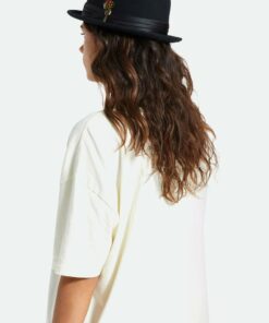 The Stout Pork Pie is a classic style hat. With a satin band, metal crest pin, and a custom line, this one isn’t short on details. Its feather completes the look and will elevate any outfit.